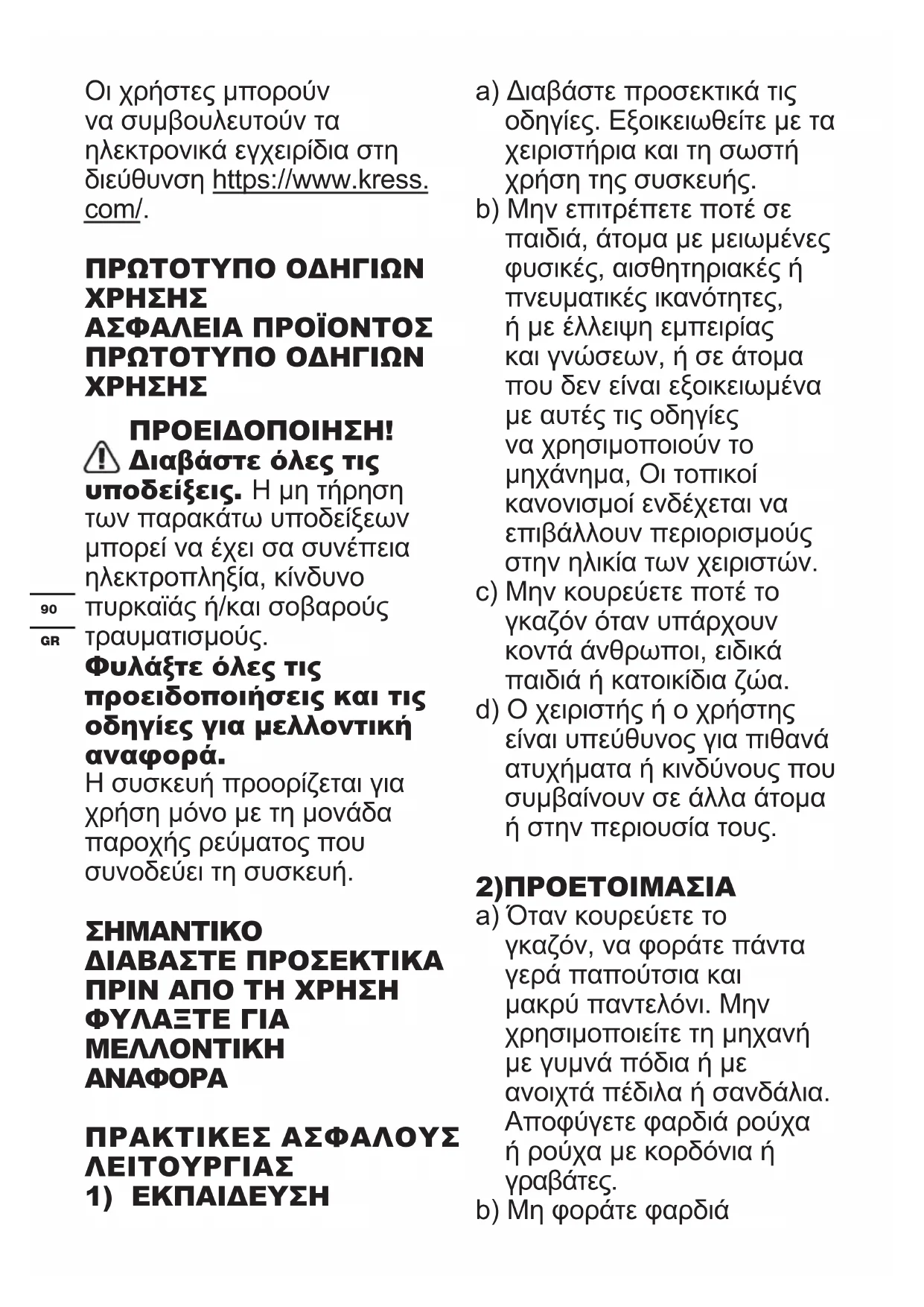 Οι χρήστες μπορούν να συμβουλευτούν τα ηλεκτρονικά εγχειρίδια στη διεύθυνση https://www.kress. com/. ΠΡΩΤΟΤΥΠΟ ΟΔΗΓΙΩΝ