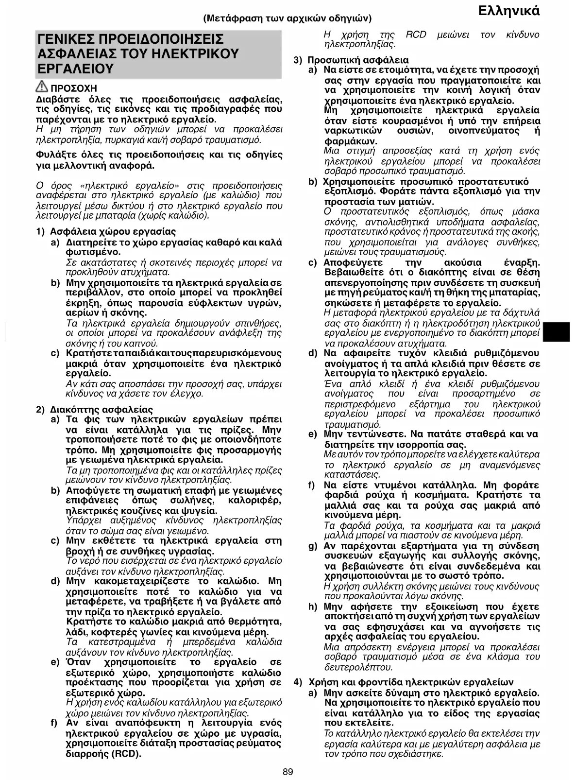 Η χρήση της RCD μειώνει τον κίνδυνο ηλεκτροπληξίας.