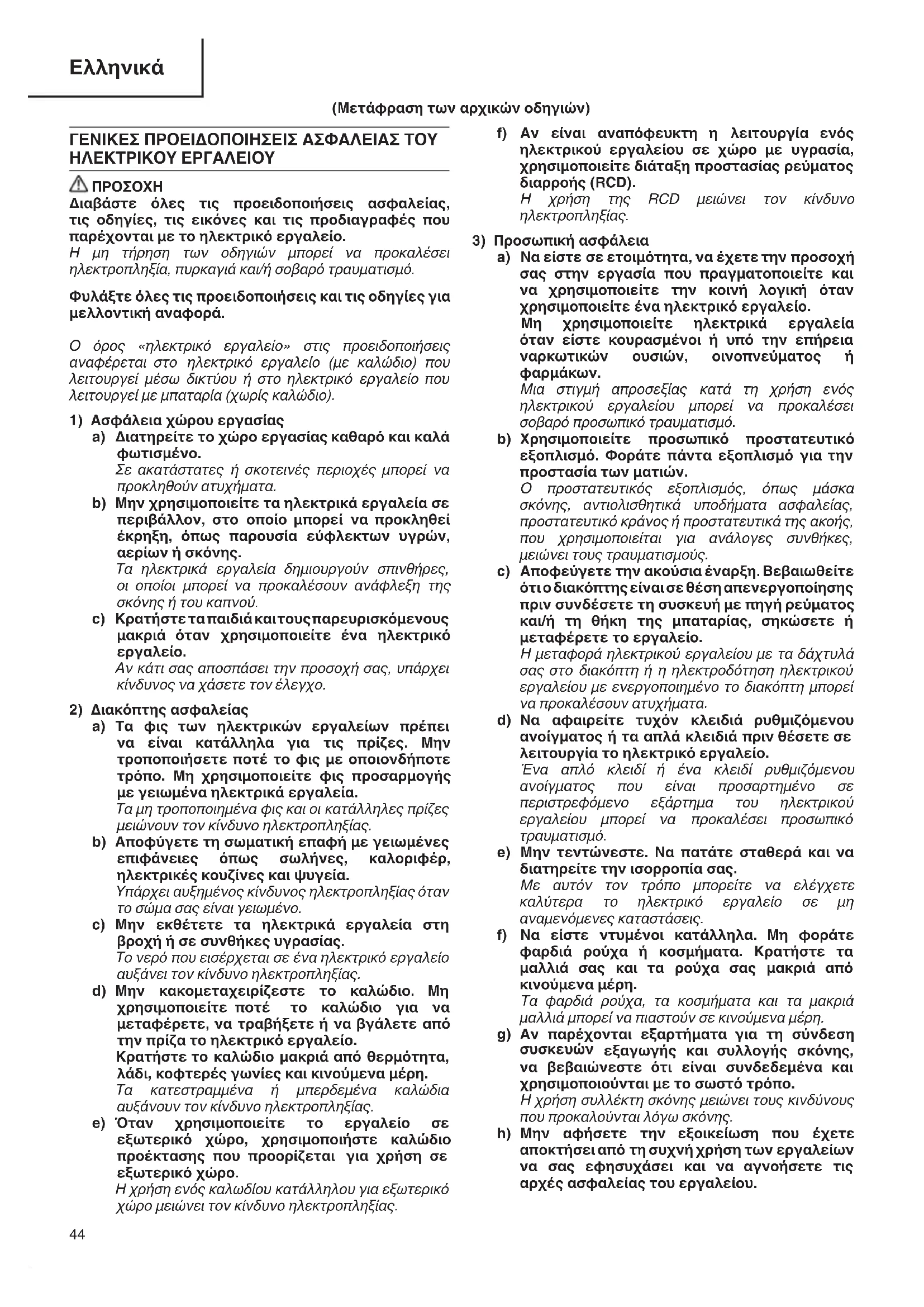 ΓΕΝΙΚΕΣ ΠΡΟΕΙΔΟΠΟΙΗΣΕΙΣ ΑΣΦΑΛΕΙΑΣ ΤΟΥ ΗΛΕΚΤΡΙΚΟΥ ΕΡΓΑΛΕΙΟΥ