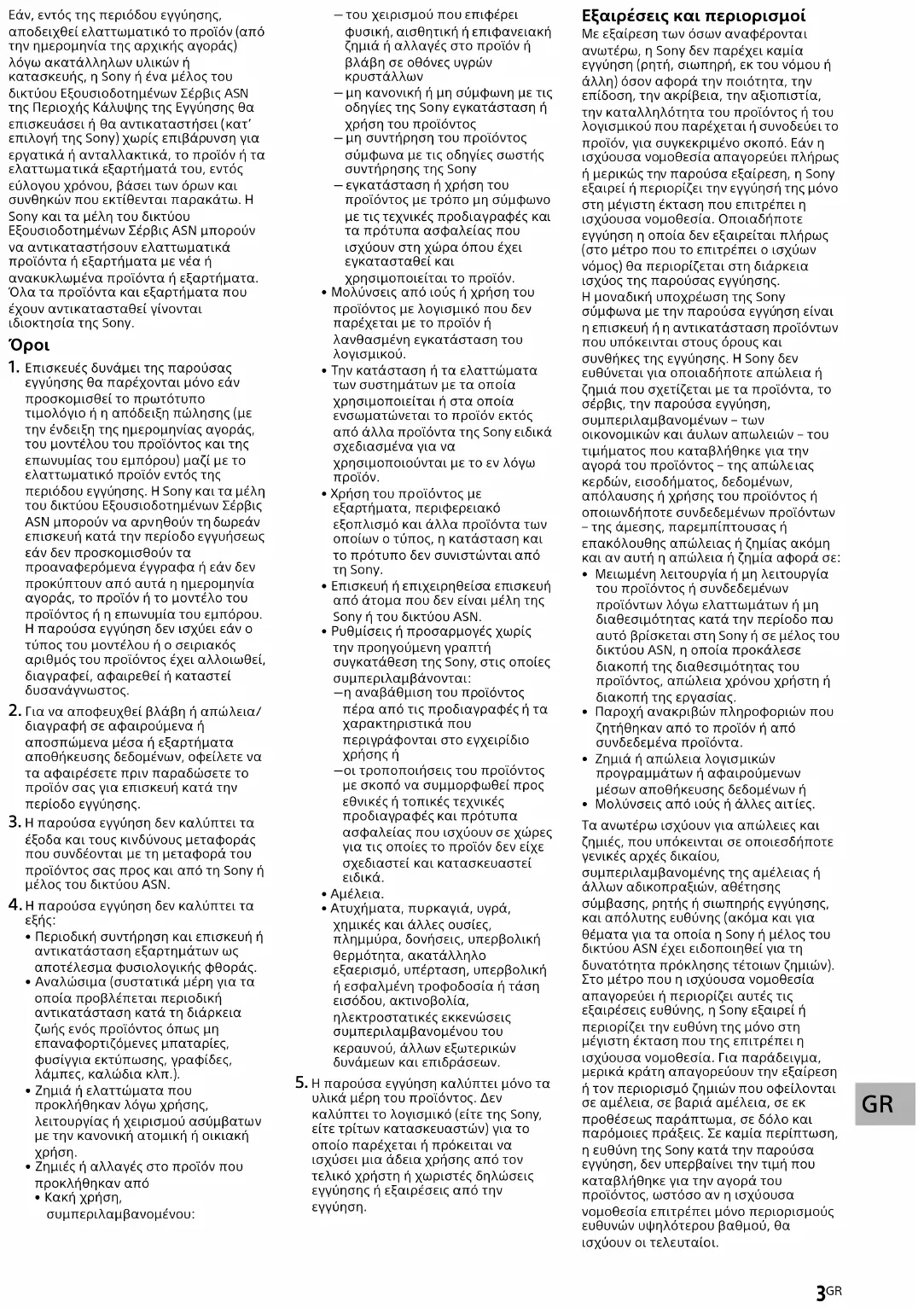 Ο καταναλωτής έχει έναντι της Sony τα δικαιώματα που απορρέουν από την παρούσα εγγύηση, σύμφωνα με τους όρους που περιέχονται σε αυτήν, χωρίς να παραβλάπτονται τα δικαιώματά του που πηγάζουν από την ισχύουσα εθνική νομοθεσία σχετικά με την πώληση καταναλωτικών προϊόντων. Η παρούσα εγγύηση δεν θίγει τα νόμιμα δικ