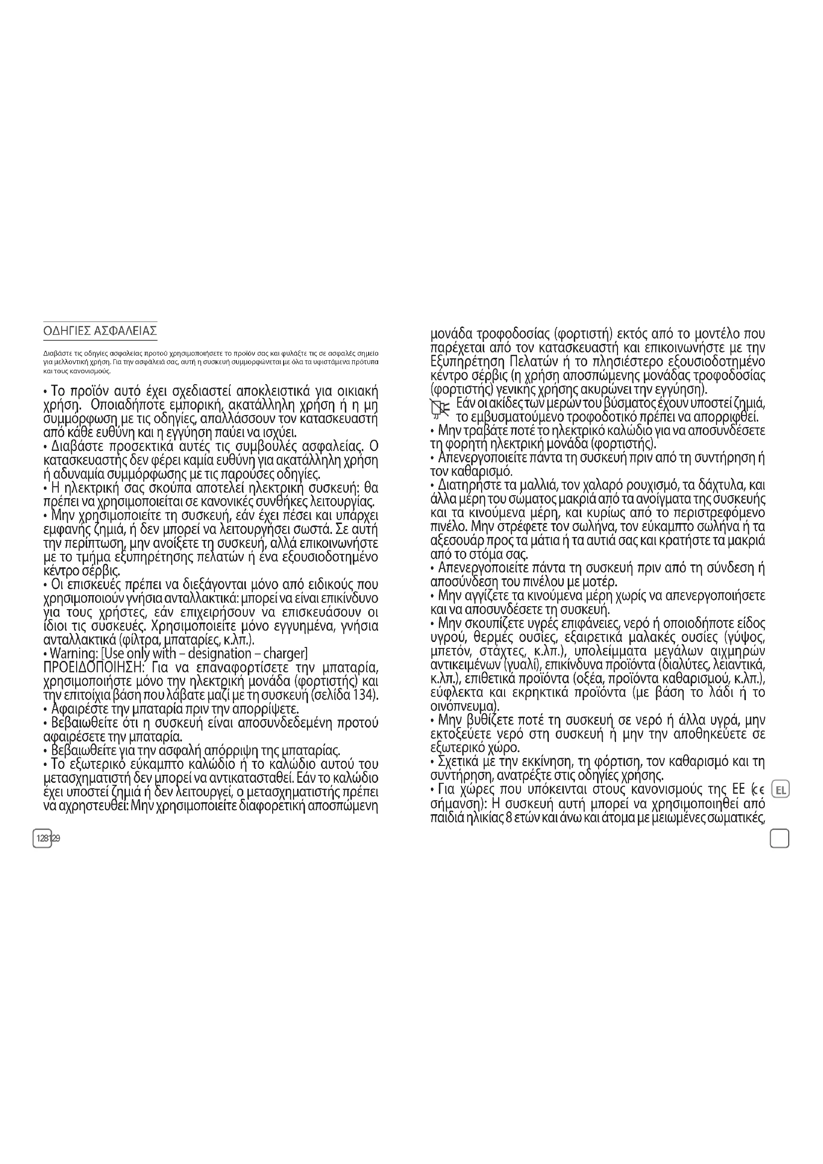 - Για χώρες που υπόκεινται στους κανονισμούς της ΕΕ ( σήμανση): Η συσκευή αυτή μπορεί να χρησιμοποιηθεί από παιδιά ηλικίας 8 ετών και άνω και άτομα με μειωμένες σωματικές,EL