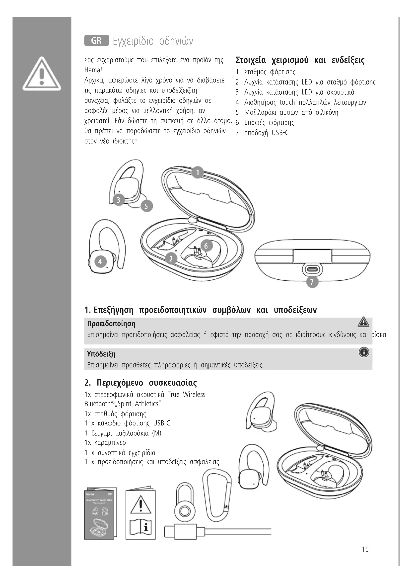 „Spirit Athletics“ 1x σταθμός φόρτισης 1 x καλώδιο φόρτισης USB-C 1 ζευγάρι μαξιλαράκια (M) 1x καραμπίνερ 1 x συνοπτικό εγχειρίδιο 1 x προειδοποιήσεις και υποδείξεις ασφαλείας J Εγχειρίδιο οδηγιών