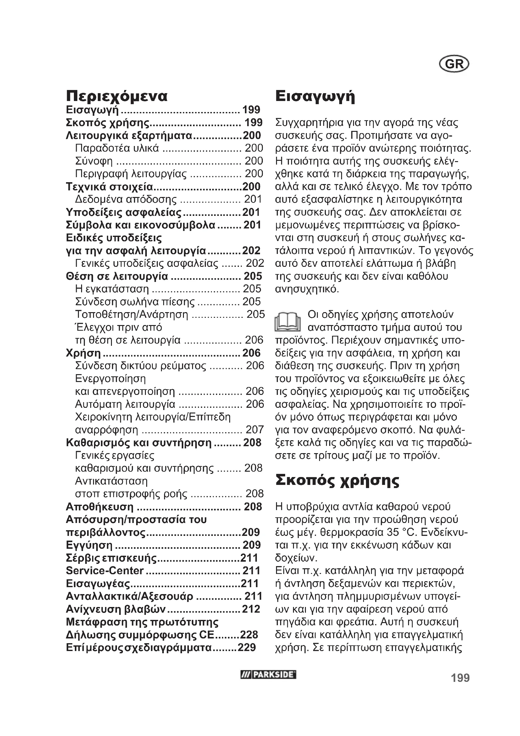 - Ειδικές υποδείξεις για την ασφαλή λειτουργία p. 202