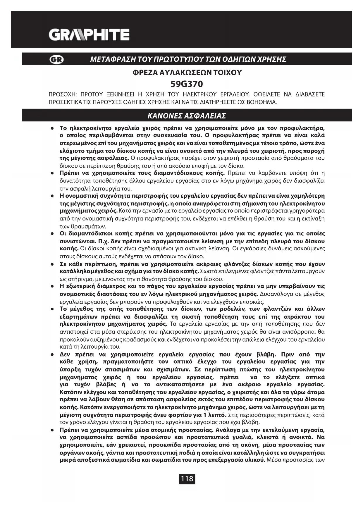 Κατεβάστε τις οδηγίες για το Πριόνι σε μορφή PDF δωρεάν! Βρείτε το εγχειρίδιό σας 59G370 - Graphite και πάρτε ξανά την ηλεκτρονική σας συσκευή στα χέρια σας. Σε αυτή τη σελίδα δημοσιεύονται όλα τα έγγραφα που απαιτούνται για τη χρήση της συσκευής σας. 59G370 της μάρκας Graphite.