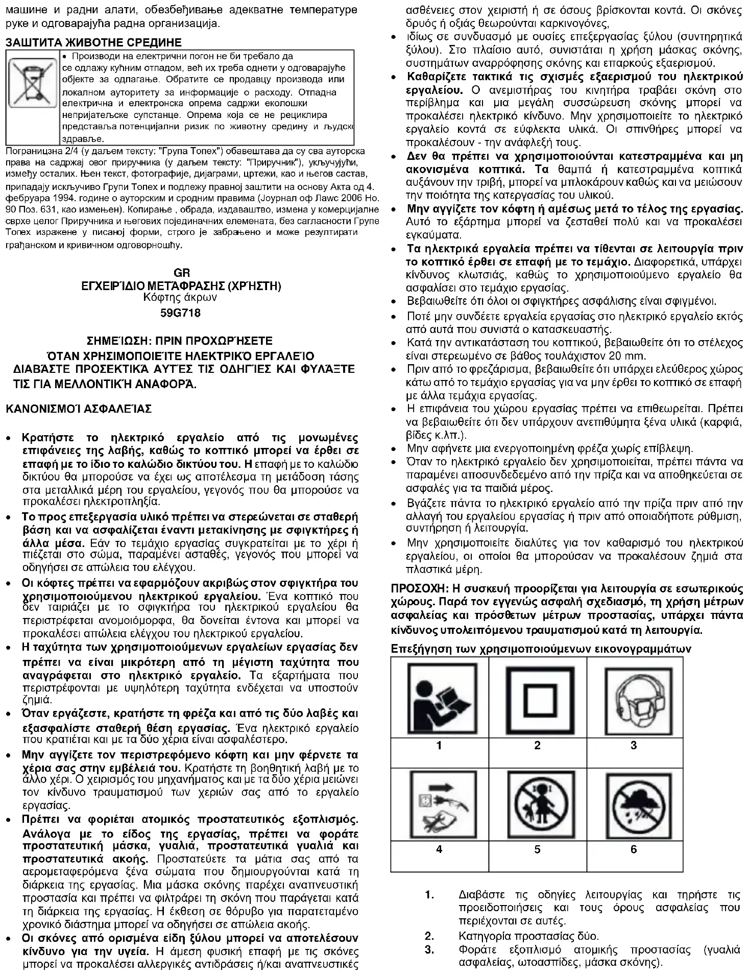 ΕΓΧΕΙΡΊΔΙΟ ΜΕΤΆΦΡΑΣΗΣ (ΧΡΉΣΤΗ) Κόφτης άκρων 59G718 ΣΗΜΕΊΩΣΗ: ΠΡΙΝ ΠΡΟΧΩΡΉΣΕΤΕ ΌΤΑΝ ΧΡΗΣΙΜΟΠΟΙΕΊΤΕ ΗΛΕΚΤΡΙΚΌ ΕΡΓΑΛΕΊΟ ΔΙΑΒΆΣΤΕ ΠΡΟΣΕΚΤΙΚΆ ΑΥΤΈΣ ΤΙΣ ΟΔΗΓΊΕΣ ΚΑΙ ΦΥΛΆΞΤΕ ΤΙΣ ΓΙΑ ΜΕΛΛΟΝΤΙΚΉ ΑΝΑΦΟΡΆ. ΚΑΝΟΝΙΣΜΟΊ ΑΣΦΑΛΕΊΑΣ