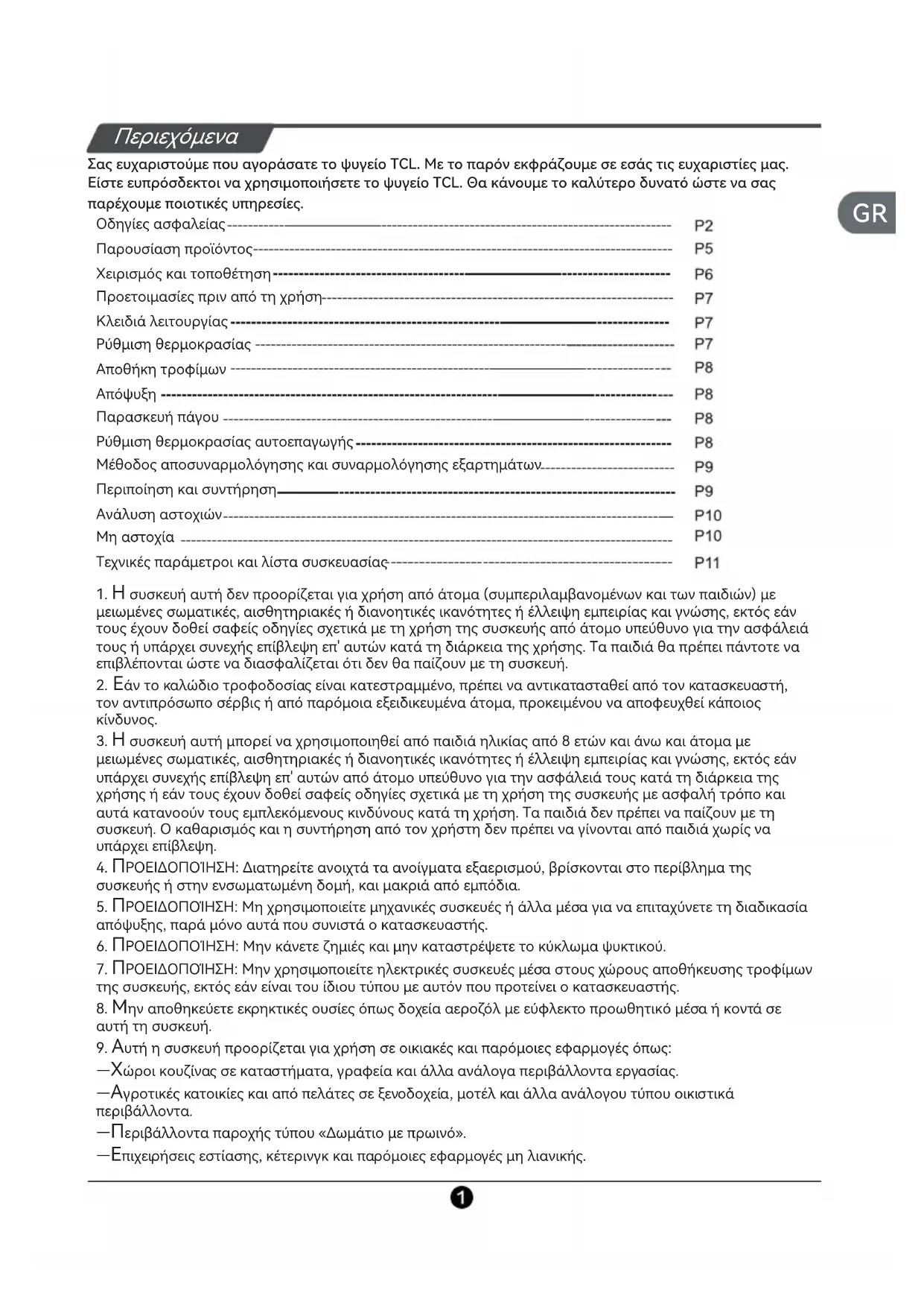 1. Η συσκευή αυτή δεν προορίζεται για χρήση από άτομα (συμπεριλαμβανομένων και των παιδιών) με