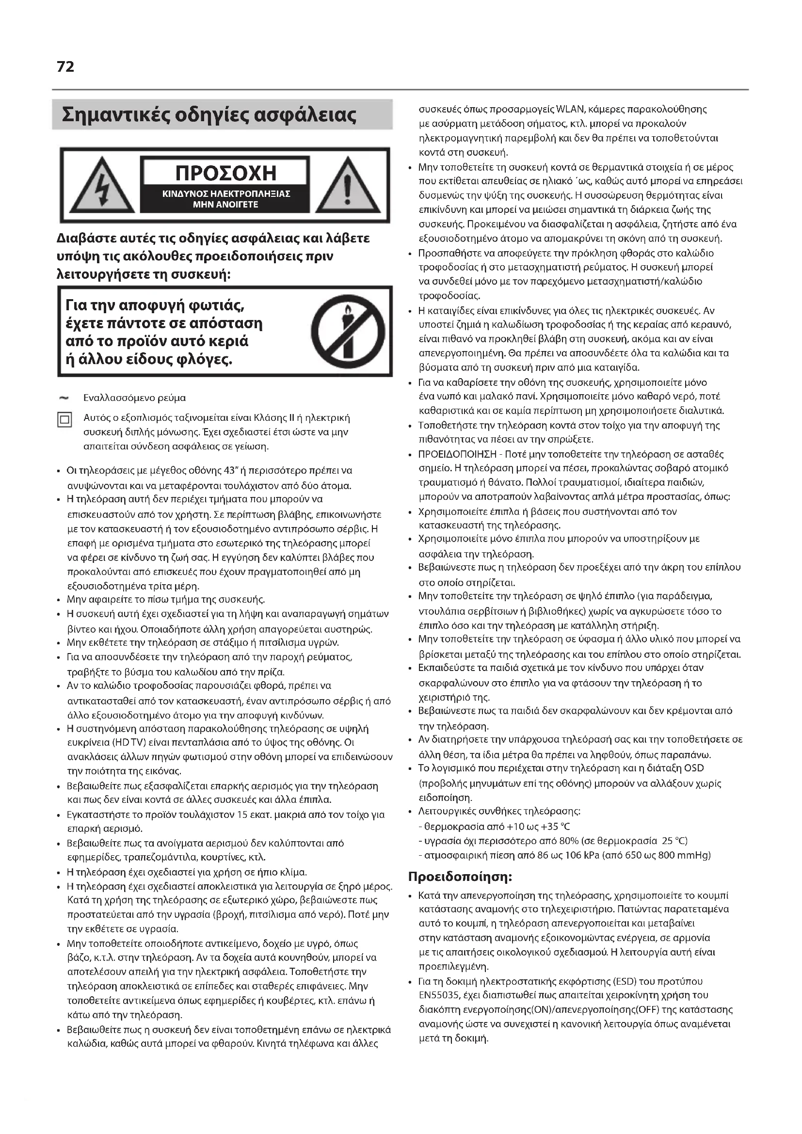 - Η τηλεόραση έχει σχεδιαστεί για χρήση σε ήπιο κλίμα.