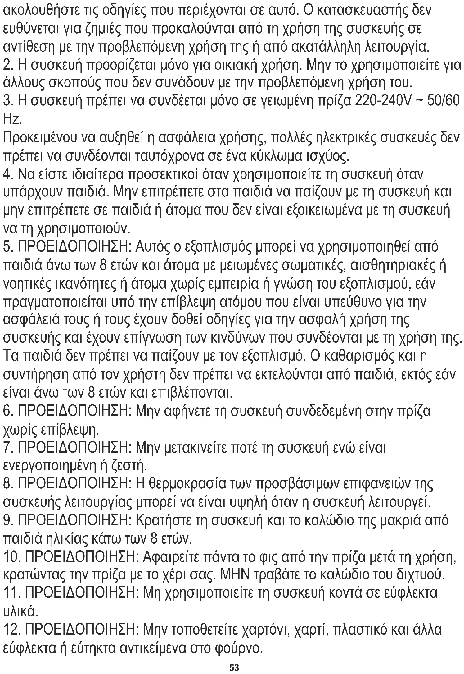 10. ΠΡΟΕΙΔΟΠΟΙΗΣΗ: Αφαιρείτε πάντα το φις από την πρίζα μετά τη χρήση,