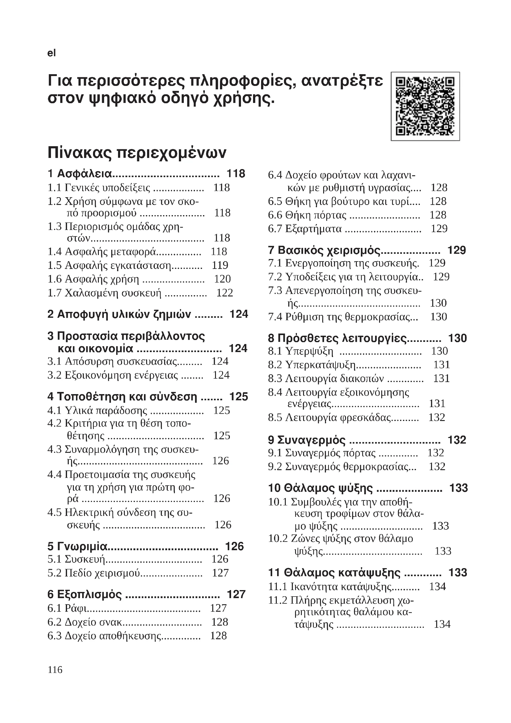 - "Ικανότητα κατάψυξης", Σελίδα 134el Αποκατάσταση βλαβών