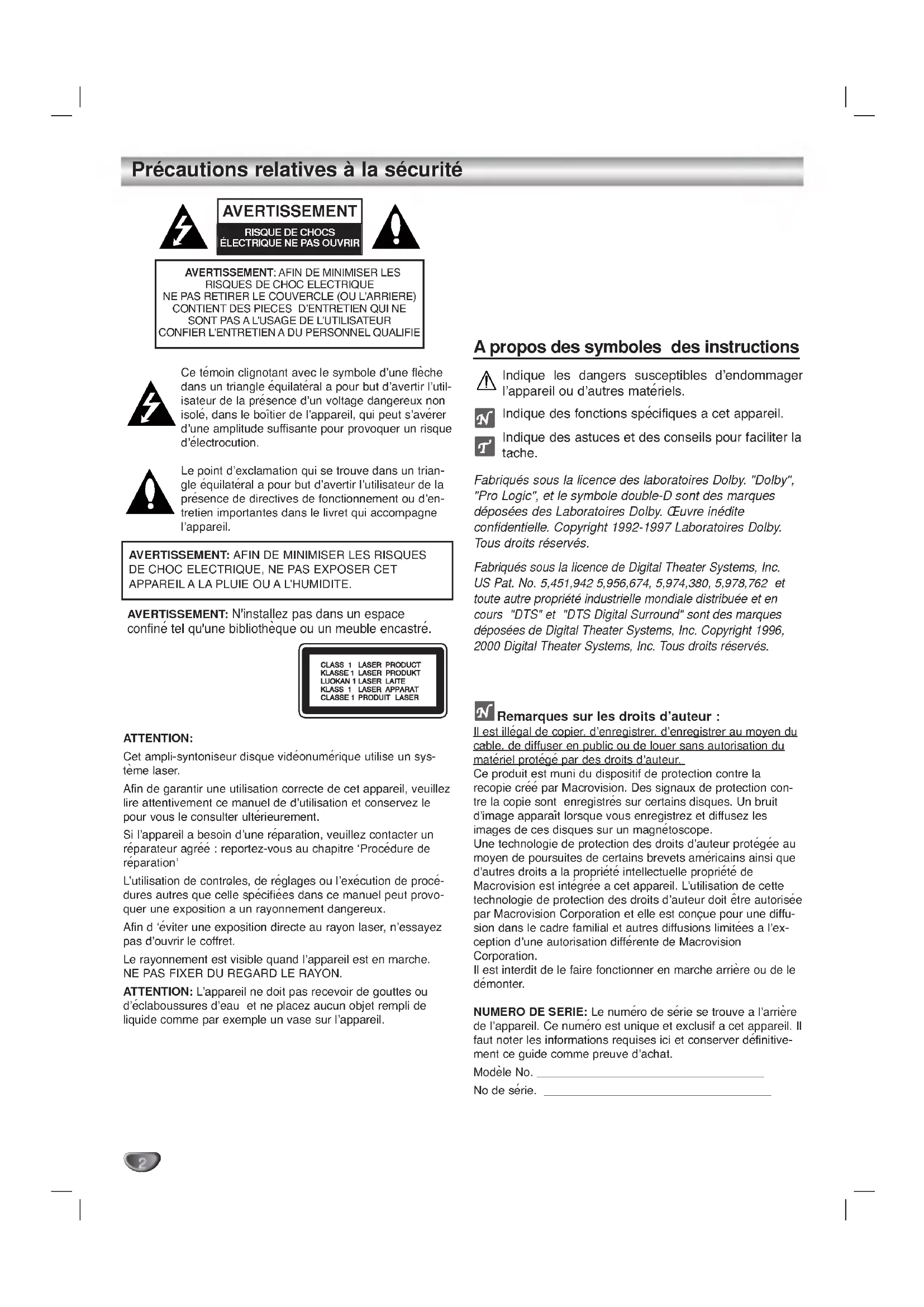 τ λ χομμανδε.30 Specification Lesschemasetlescaracteristiquessontsusceptiblesd'etremodifiesatoutmoment. General CD/DVD Amplifier Haut-Parleurs Accessoires fournis Αλιμεντατιον?οιρ λ∋ τιθυεττεπρινχιπαλεΧονσομματιον?οιρ λ∋ τιθυεττεπρινχιπαλεΠοιδσ2.5κγΔιμενσιονσεξτερνεσ(Ω