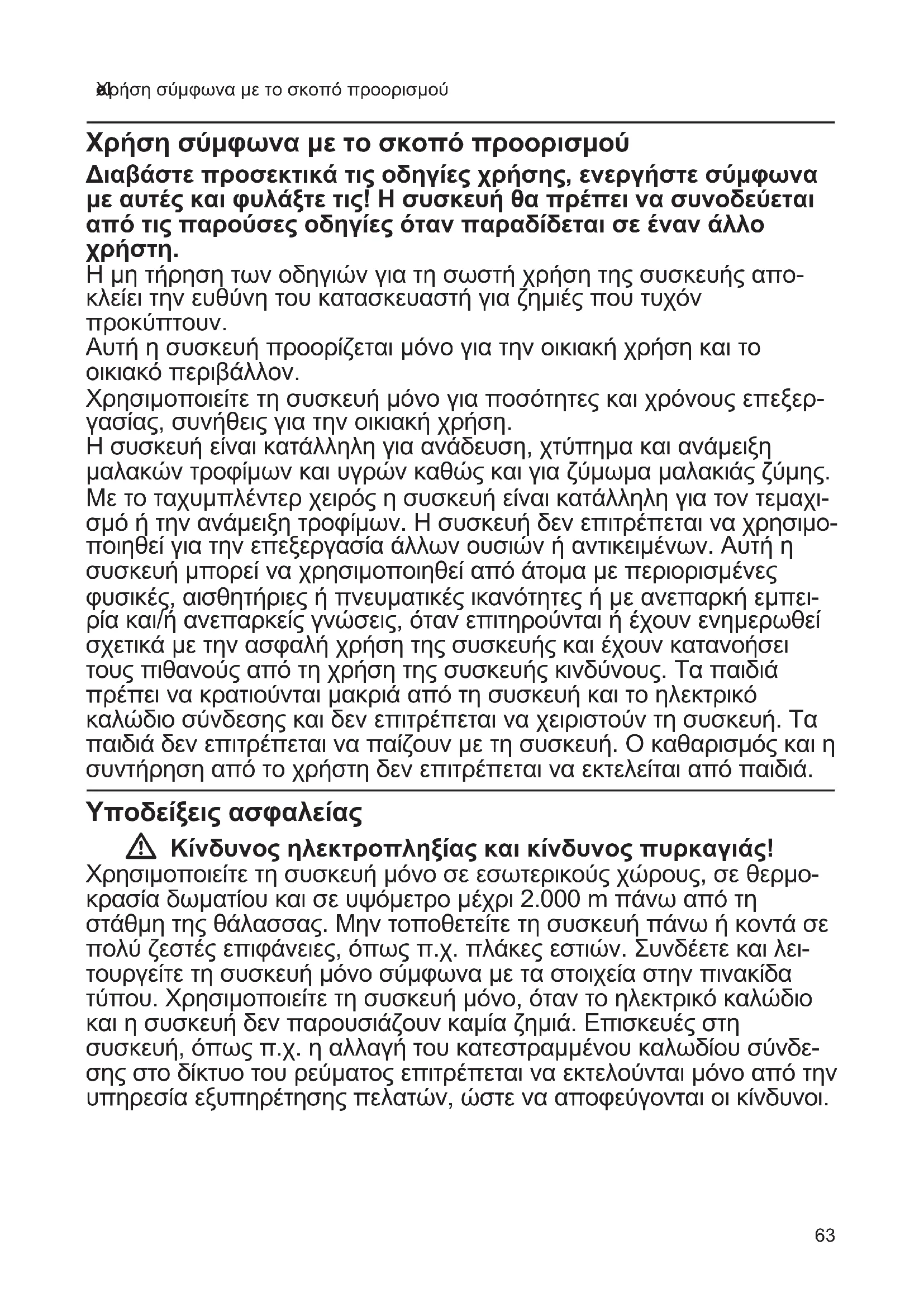 - Περιεχόμενα Χρήση σύμφωνα με το σκοπό προορισμού p. 63