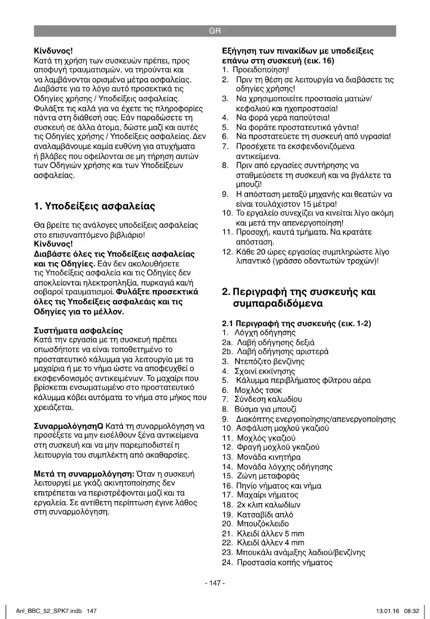 τραυματισμούς παντός είδους που οφείλονται σε μη ενδεδειγμένη χρήση ευθύνεται ο χρήστης / χειριστής και όχι ο κατασκευαστής.