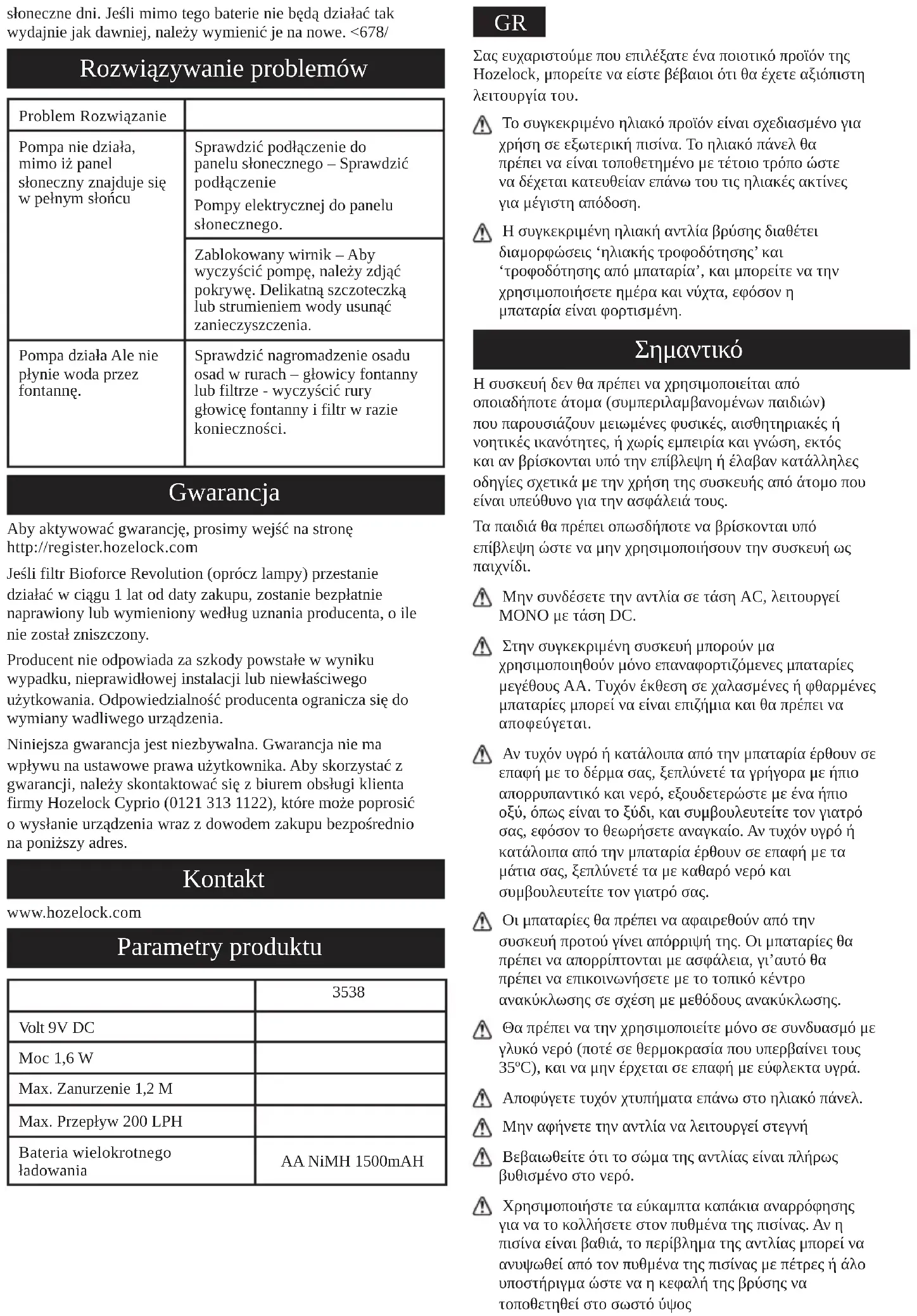 ΕΓΧΕΙΡΊΔΙΟ ΧΡΉΣΗΣ Solar Cascade Pump 3538 HOZELOCK