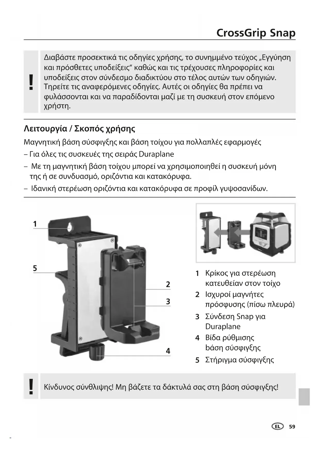 Κατεβάστε τις οδηγίες για το Τοίχος στήριξης σε μορφή PDF δωρεάν! Βρείτε το εγχειρίδιό σας CrossGrip Snap - Laserliner και πάρτε ξανά την ηλεκτρονική σας συσκευή στα χέρια σας. Σε αυτή τη σελίδα δημοσιεύονται όλα τα έγγραφα που απαιτούνται για τη χρήση της συσκευής σας. CrossGrip Snap της μάρκας Laserliner.