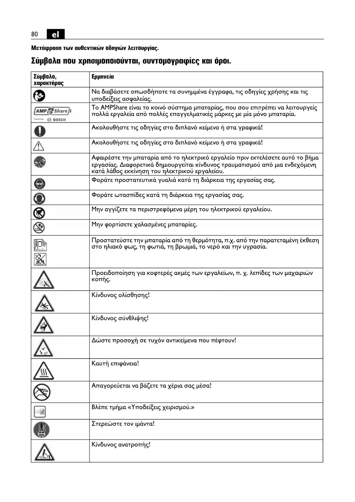 Μετάφραση των αυθεντικών οδηγιών λειτουργίας. Σύμβολα που χρησιμοποιούνται, συντομογραφίες και όροι.