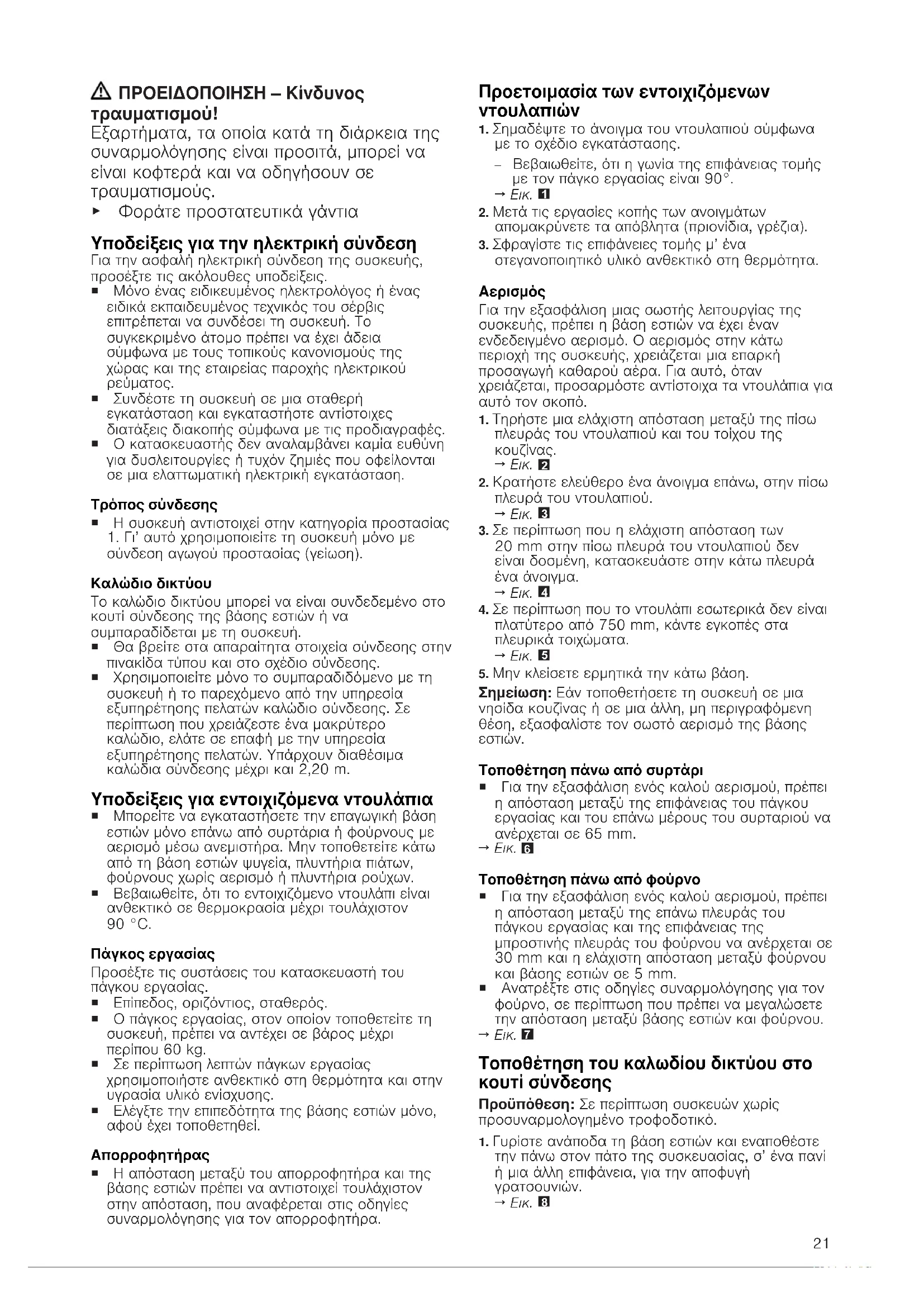 Σημείωση:Εάν τοποθετήσετε τη συσκευή σε μια νησίδα κουζίνας ή σε μια άλλη, μη περιγραφόμενη θέση, εξασφαλίστε τον σωστό αερισμό της βάσης