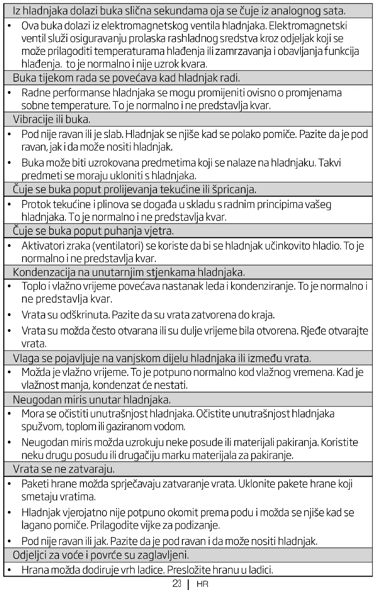 - Ο θόρυβος μπορεί να προκαλείται από αντικείμενα που έχουν τοποθετηθεί πάνω στο ψυγείο. Αυτά τα είδη πρέπει να απομακρυνθούν από τη συσκευή. Υπάρχουν θόρυβοι σαν ροής ή ψεκασμού υγρού.