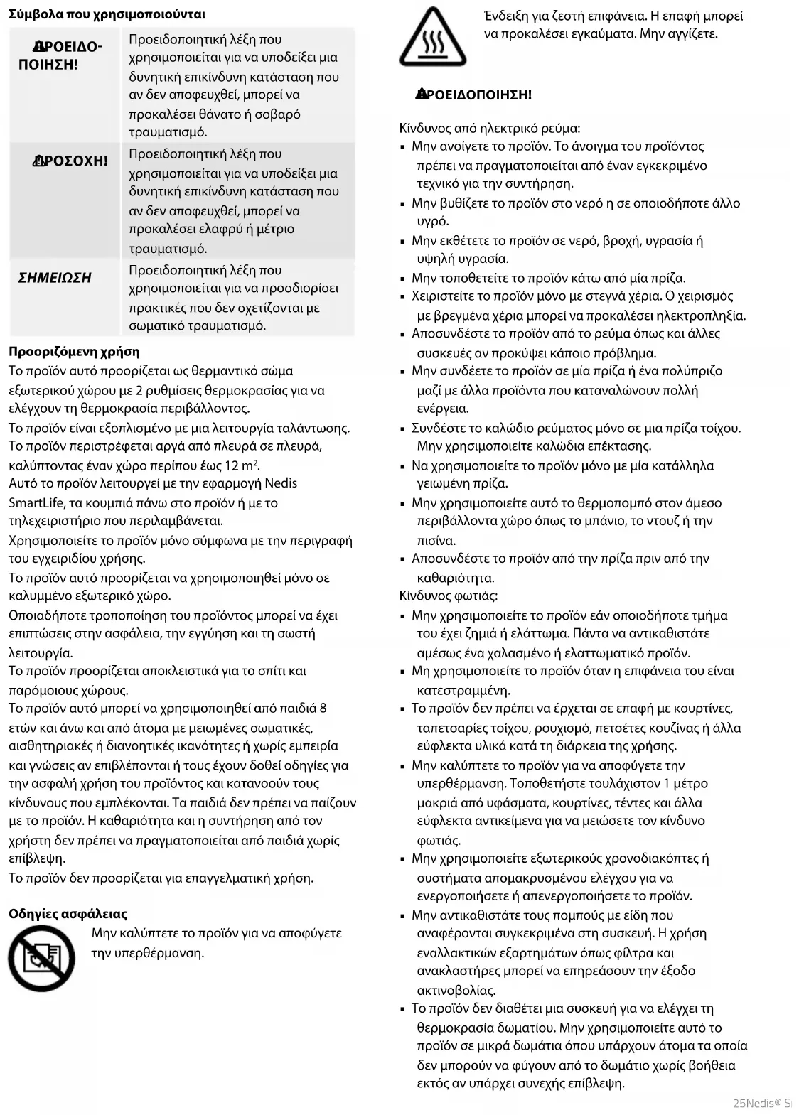 Οδηγίες ασφάλειας Έξυπνο θερμαντικό σώμα εξωτερικού χώρου HTPA21BKW Για περισσότερες πληροφορίες δείτε το εκτενές online εγχειρίδιο: ned.is/htpa21bkw Σχετικά με αυτό το κείμενο Αυτό το έγγραφο αποτελεί το εγχειρίδιο χρήσης και περιλαμβάνει όλες τις πληροφορίες για τη σωστή, την αποτελεσματική και ασφαλή χρήση του προϊόντος. Βεβαιωθείτε ότι έχετε διαβάσει και κατανοήσει αυτές τις οδηγίες πριν εγκαταστήσετε ή χρησιμοποιήσετε το προϊόν. Κρατήστε τη συσκευασία και το κείμενο για μελλοντική