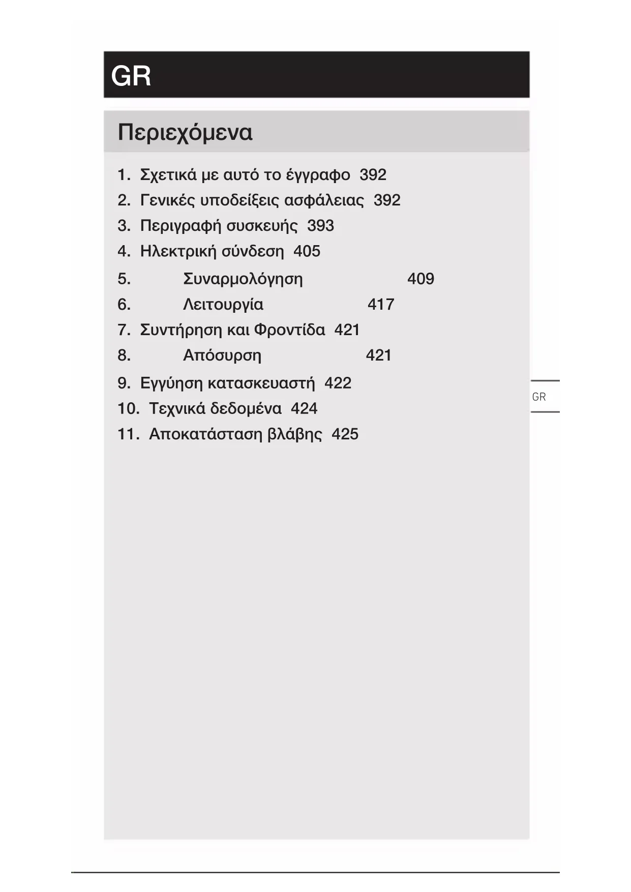 - Πραγματοποιείτε σύνδεση δικτύου. % «4. Ηλεκτρική σύνδεση»GR – 411 – Περιεχόμενα