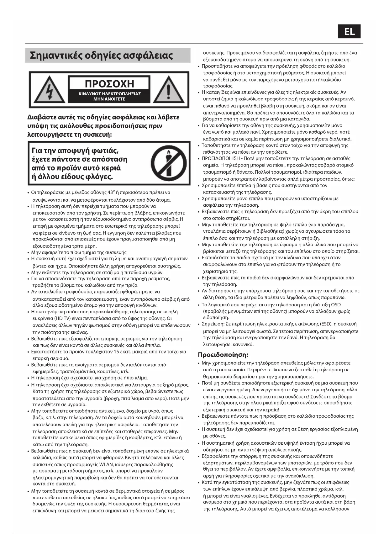 ΚΙΝΔΥΝΟΣ ΗΛΕΚΤΡΟΠΛΗΞΙΑΣΜΗΝ ΑΝΟΙΓΕΤΕ Διαβάστε αυτές τις οδηγίες ασφάλειας και λάβετε υπόψη τις ακόλουθες προειδοποιήσεις πριν λειτουργήσετε τη συσκευή: Για την αποφυγή φωτιάς, έχετε πάντοτε σε απόσταση από το προϊόν αυτό κεριά ή άλλου είδους φλόγες.