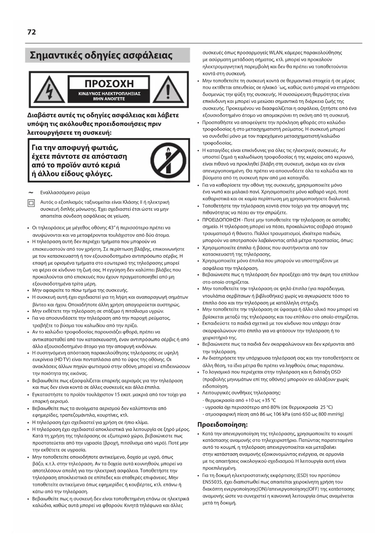 - Η τηλεόραση έχει σχεδιαστεί για χρήση σε ήπιο κλίμα.