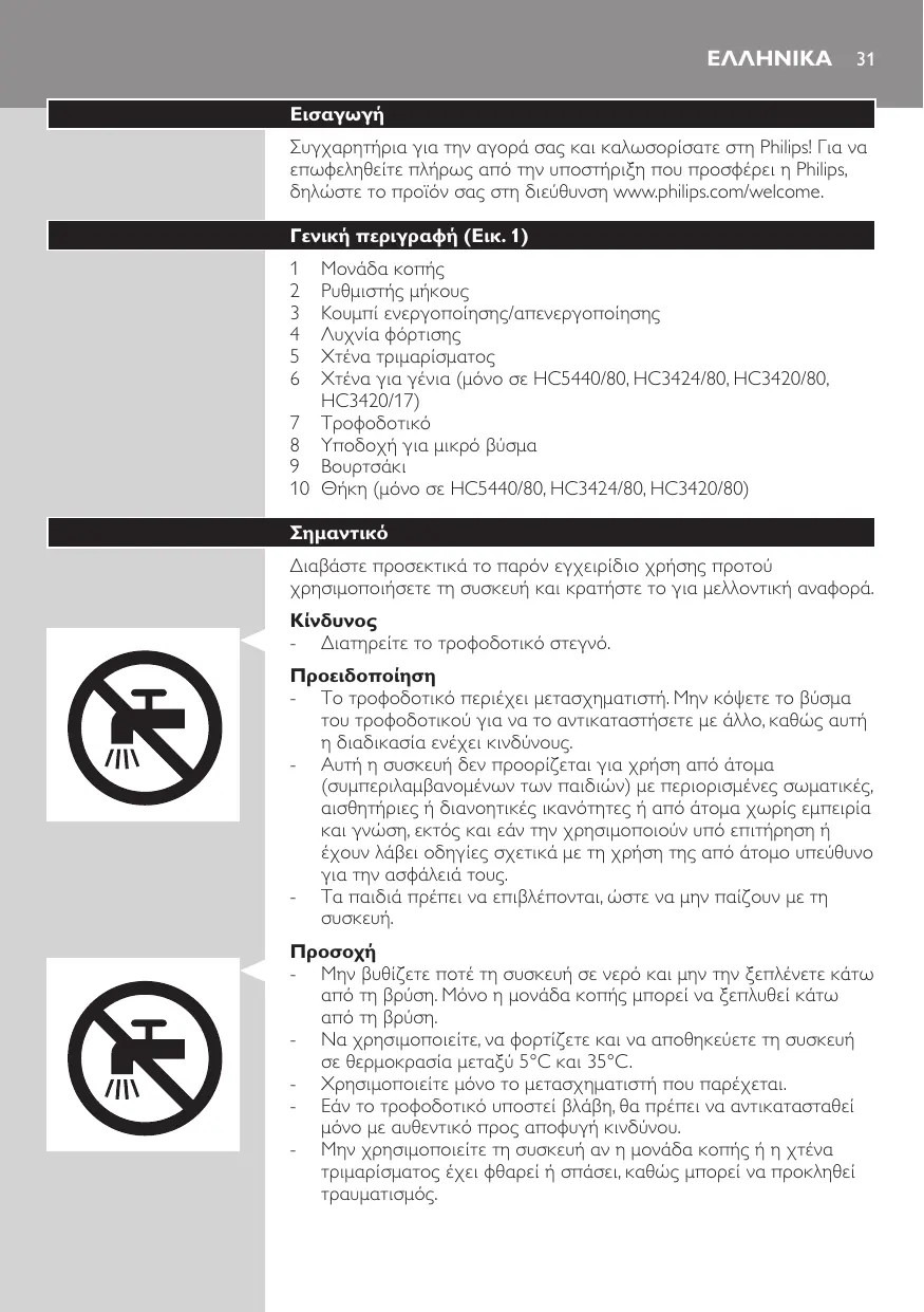 ΕΓΧΕΙΡΊΔΙΟ ΧΡΉΣΗΣ HC3424/80 PHILIPS