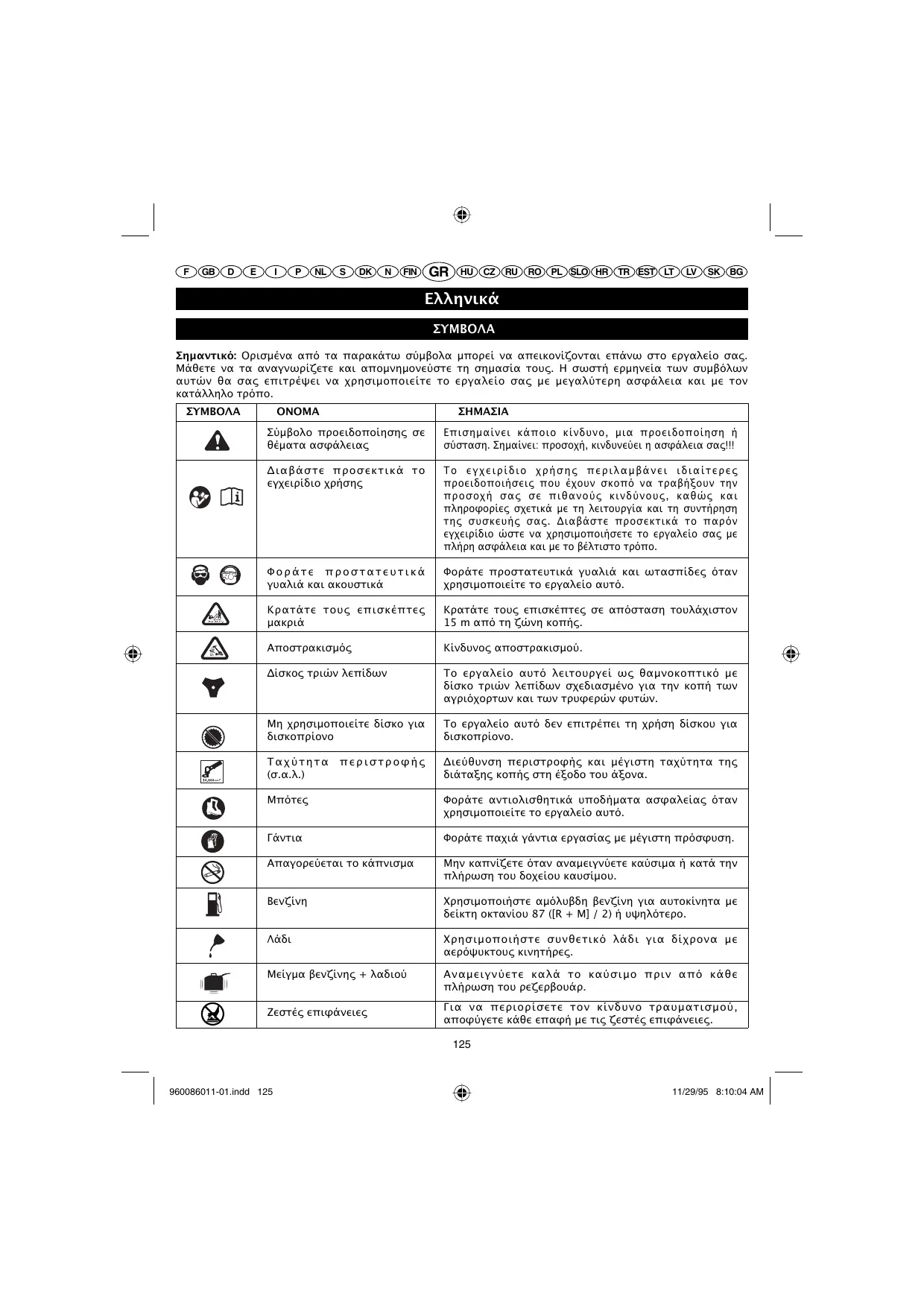 Ελληνικά ΣΥΜΒΟΛΑ Σημαντικό: Ορισμένα από τα παρακάτω σύμβολα μπορεί να απεικονίζονται επάνω στο εργαλείο σας. Μάθετε να τα αναγνωρίζετε και απομνημονεύστε τη σημασία τους. Η σωστή ερμηνεία των συμβόλων αυτών θα σας επιτρέψει να χρησιμοποιείτε το εργαλείο σας με τη μεγαλύτερη ασφάλεια και τον κατάλληλο τρόπο. ΣΥΜΒΟΛΑ