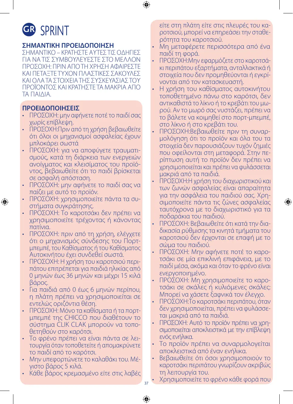 Retrouvez gratuitement la notice de l'appareil SPRINT CHICCO au format PDF.