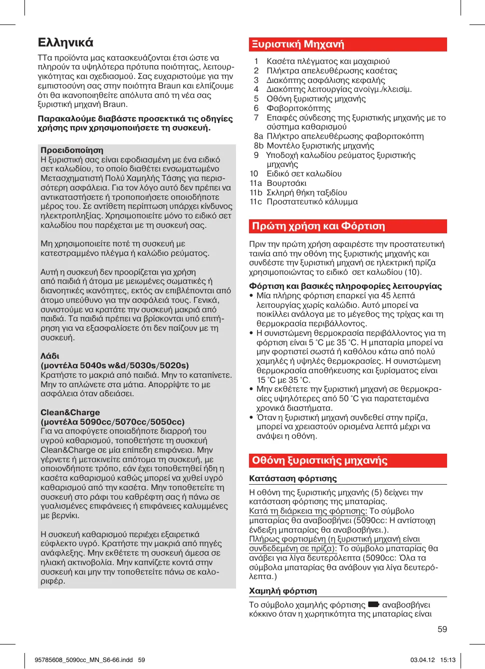 Βρείτε δωρεάν το εγχειρίδιο της συσκευής 5030S, 5040 S W&D, 5070CC BRAUN σε μορφή PDF.