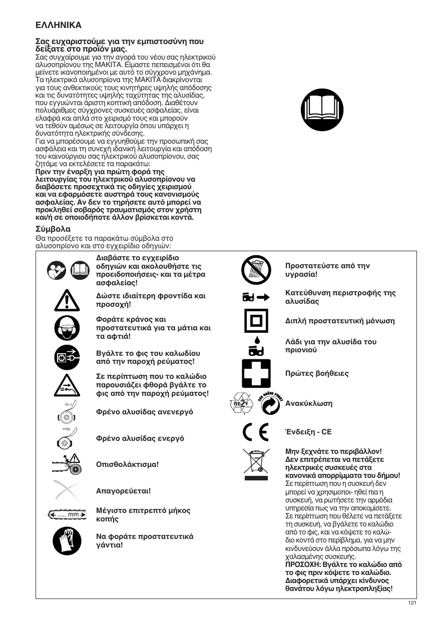 Téléchargez la notice de votre ηλεκτρικό αλυσοπρίονο au format PDF gratuitement ! Retrouvez votre notice UC3530A - MAKITA et reprennez votre appareil électronique en main. Sur cette page sont publiés tous les documents nécessaires à l'utilisation de votre appareil UC3530A de la marque MAKITA.