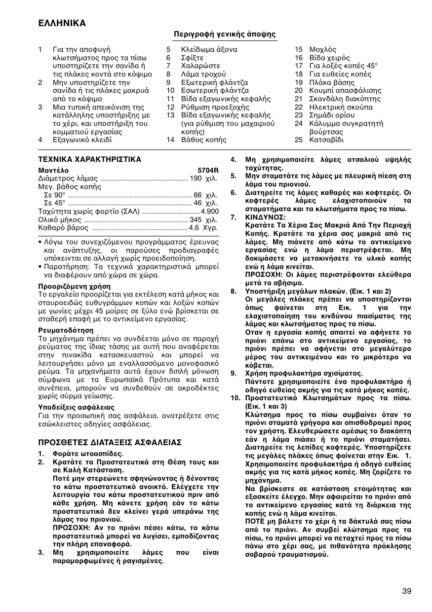 - Λάµα τροχού Εξωτερική φλάντζα Εσωτερική φλάντζα Βίδα εξαγωνικής κεφαλής Ρύθµιση προεξοχής Βίδα εξαγωνικής κεφαλής (για ρύθµιση του µαχαιριού 14 Βάθος κοπής ΤΕΧΝΙΚΑ ΧΑΡΑΚΤΗΡΙΣΤΙΚΑ 5704R ∆ιάµετρος λάµας p. 190