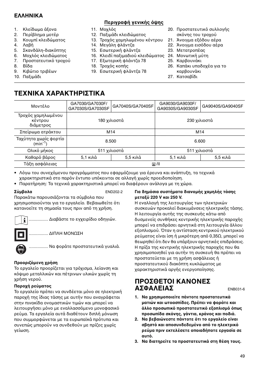Téléchargez la notice de votre Γωνιακός τροχός au format PDF gratuitement ! Retrouvez votre notice GA 9030X01 - MAKITA et reprennez votre appareil électronique en main. Sur cette page sont publiés tous les documents nécessaires à l'utilisation de votre appareil GA 9030X01 de la marque MAKITA.