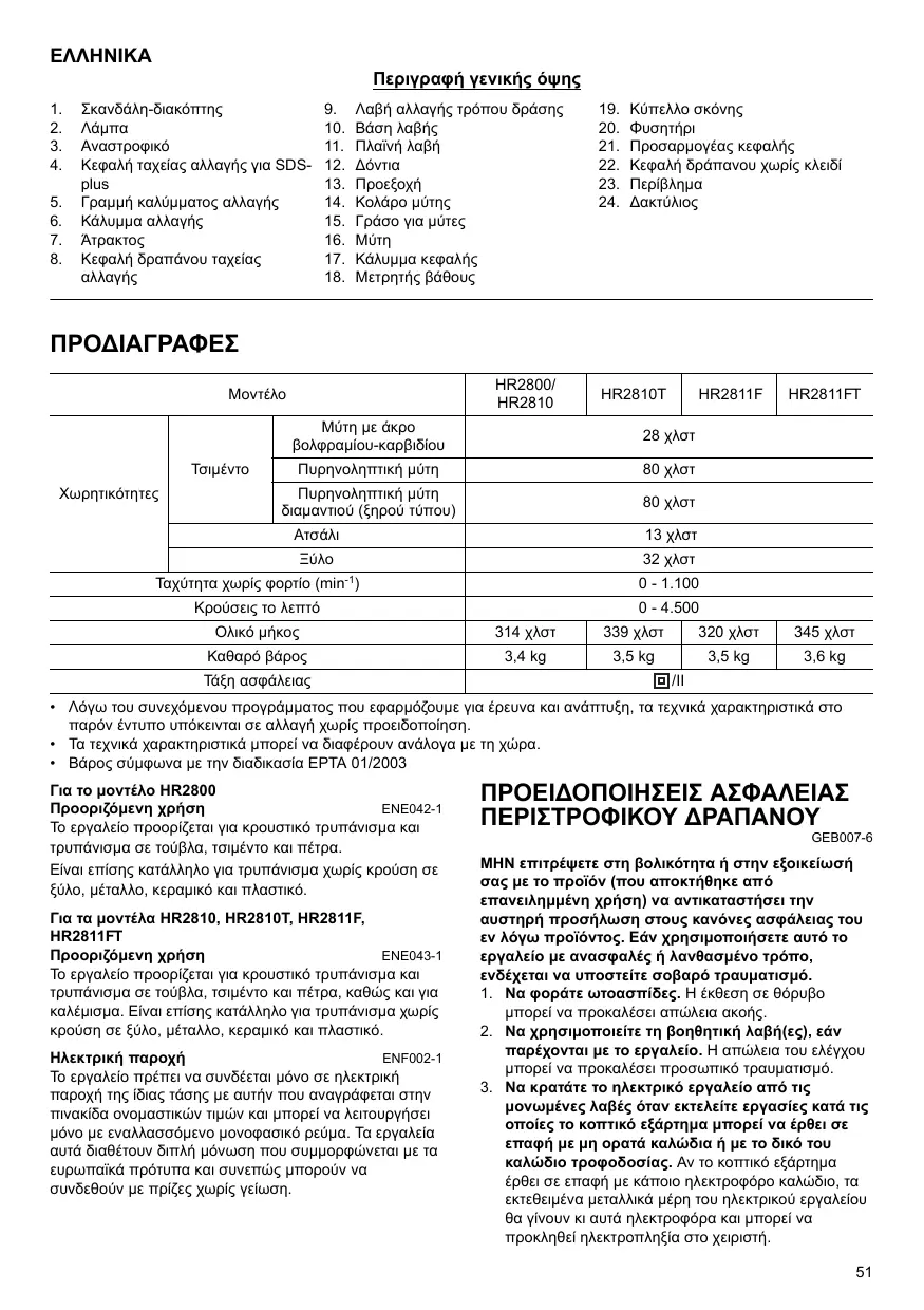 Tia ta muvtéλa HR2811F, HR2811FT Θópuβoc