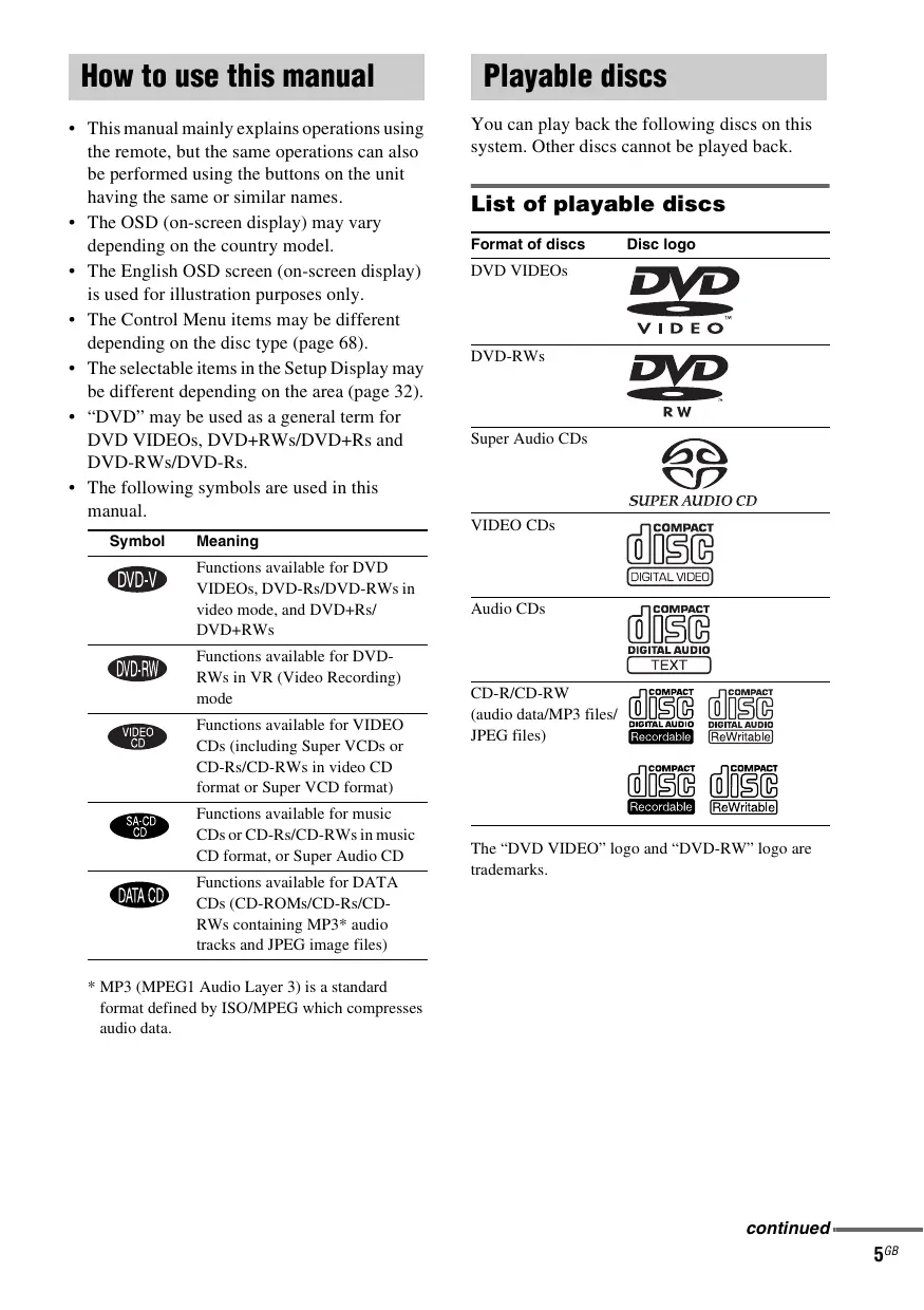 DVD/VIDEO CD/CD/Super Audio CD/MP3/JPEG - Various functions