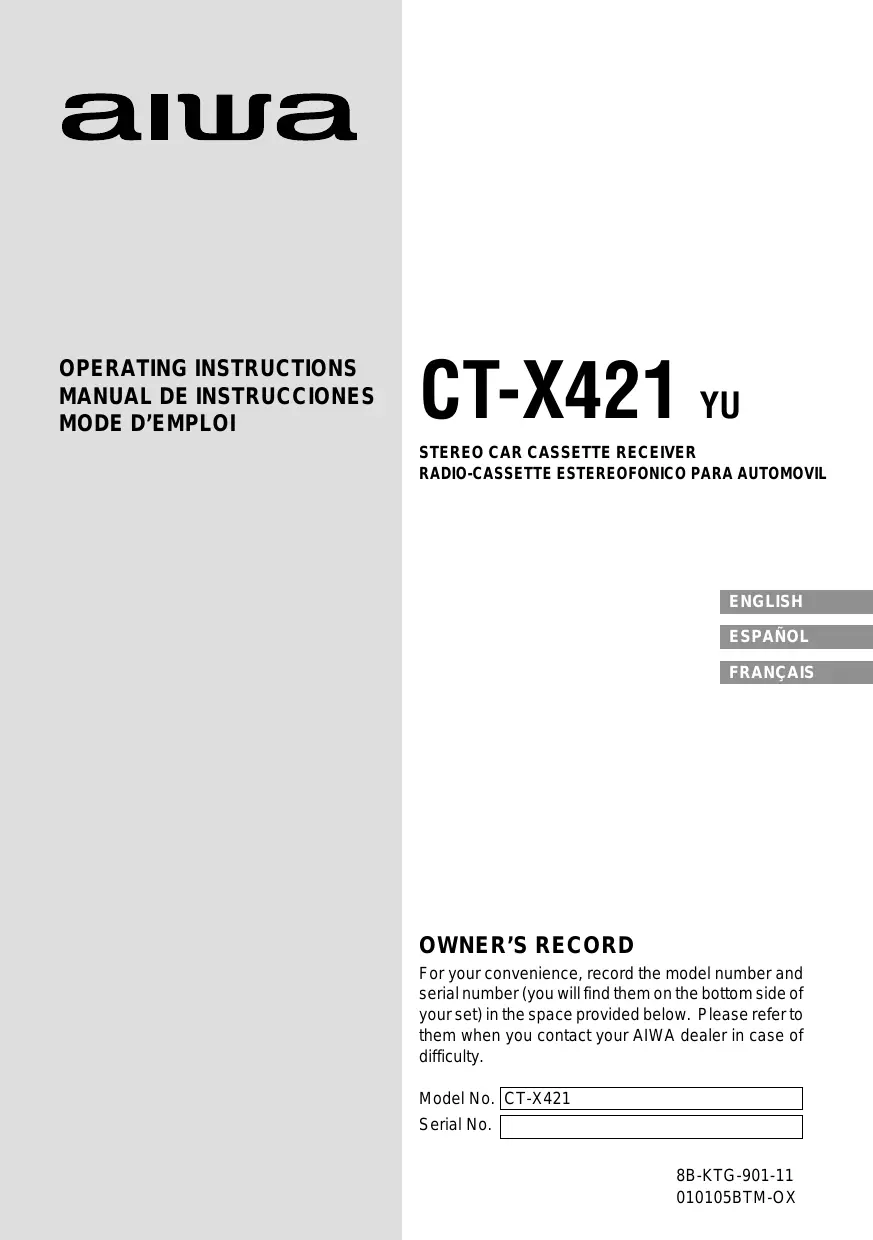 For your convenience, record the model number and serial number (you will find them on the bottom side of your set) in the space provided below. Please refer to them when you contact your AIWA dealer in case of difficulty.