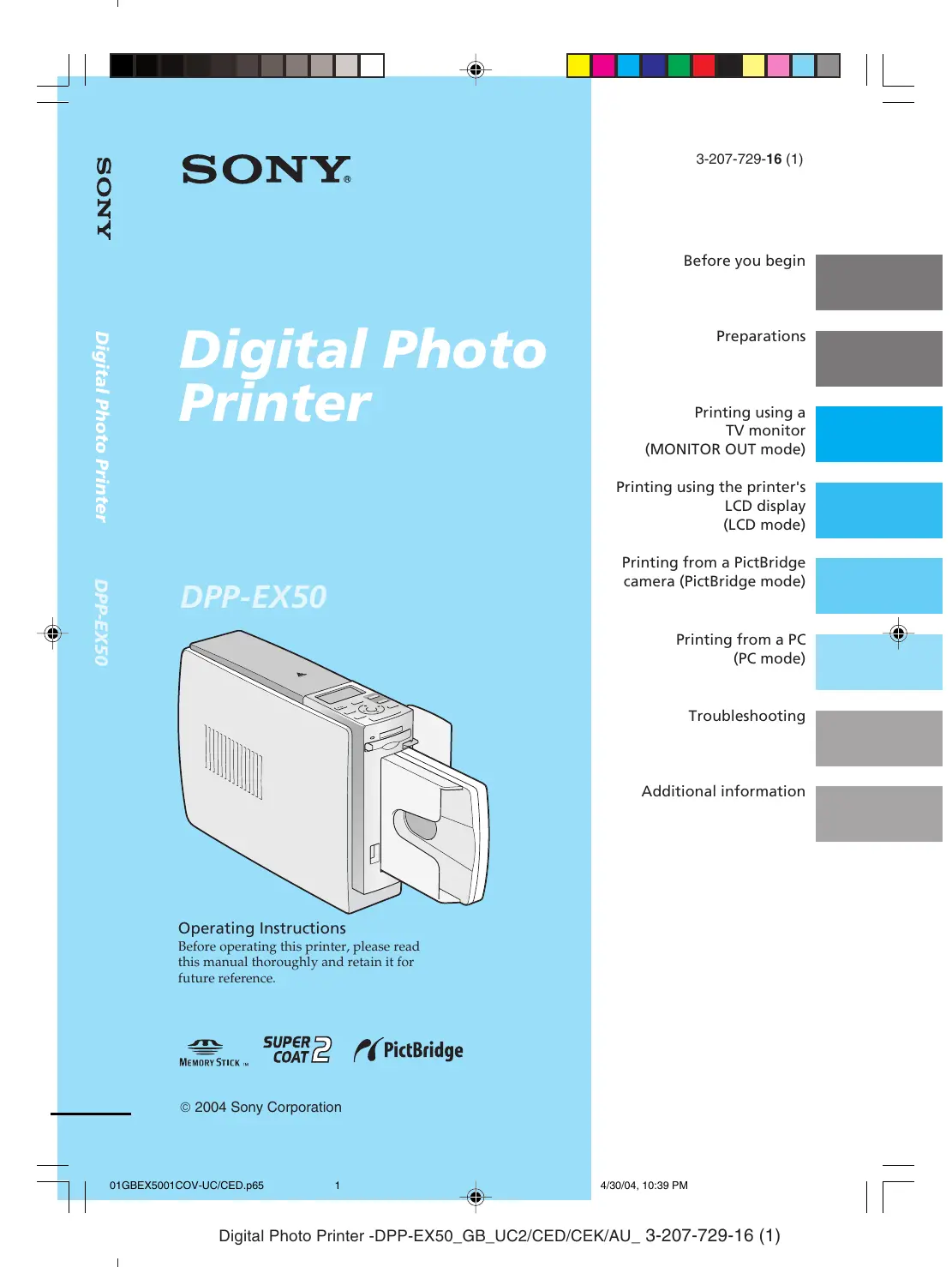 4/30/04, 10:39 PM Digital Photo Printer -DPP-EX50_GB_UC2/CED/CEK/AU_ 3-207-729-16 (1)