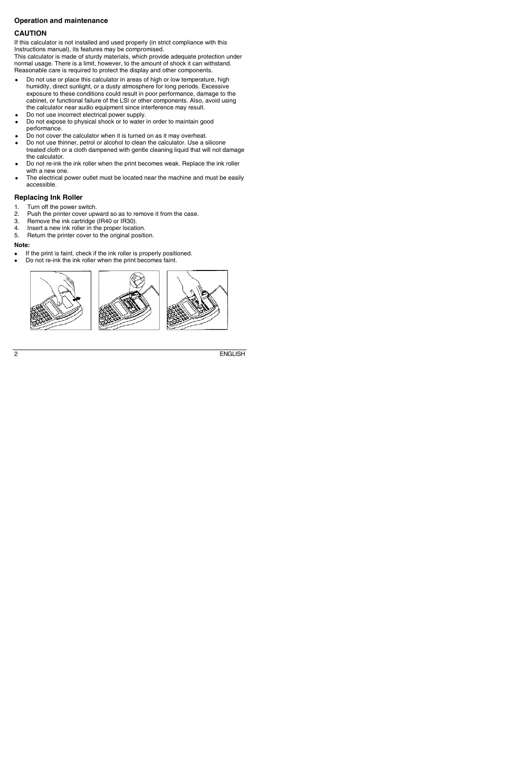 If this calculator is not installed and used properly (in strict compliance with this Instructions manual), its features may be compromised.