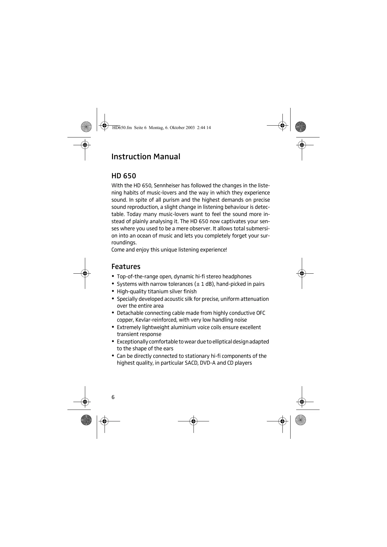 Download the instructions for your Headphones in PDF format for free! Find your manual HD 650 - SENNHEISER and take your electronic device back in hand. On this page are published all the documents necessary for the use of your device. HD 650 by SENNHEISER.
