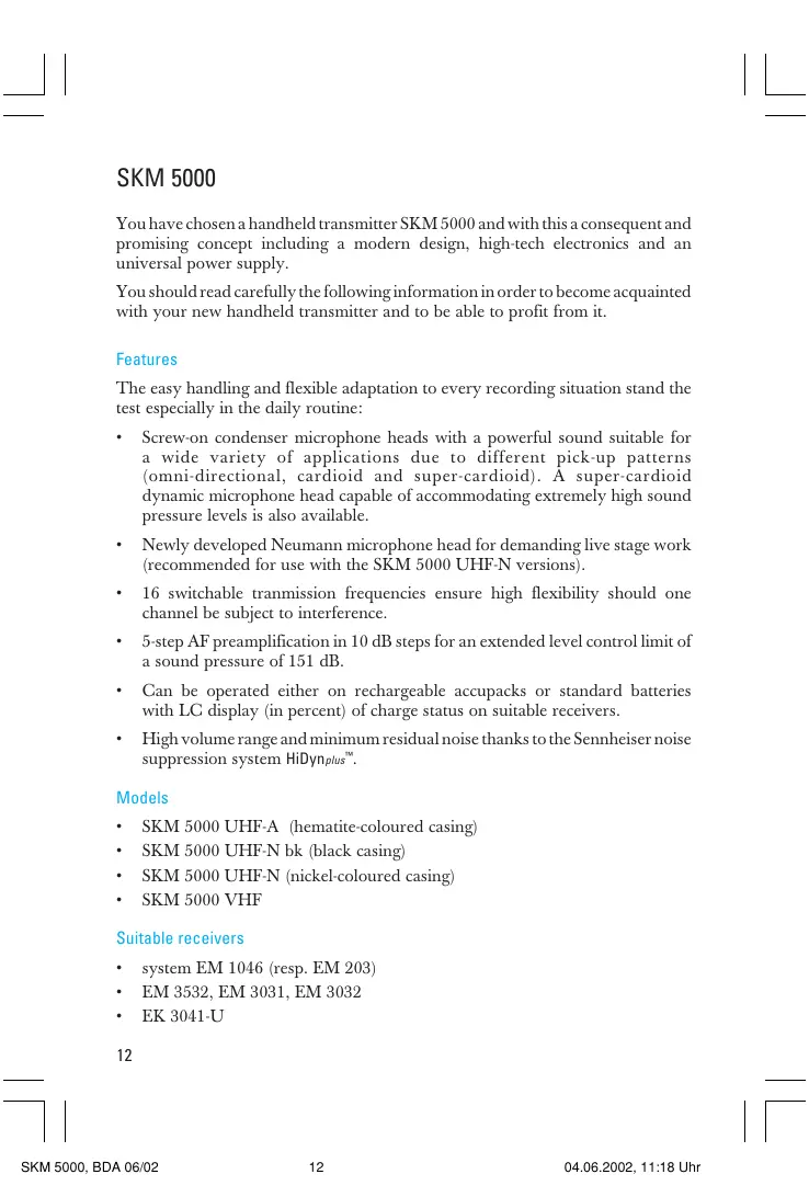 Find the device manual for free SKM 5000 SENNHEISER in PDF.