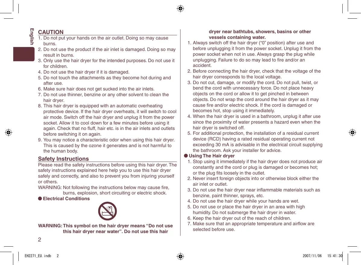 Before operating this hair dryer, please read these instructions completely and save this manual for future use. EH2271_EU.indb