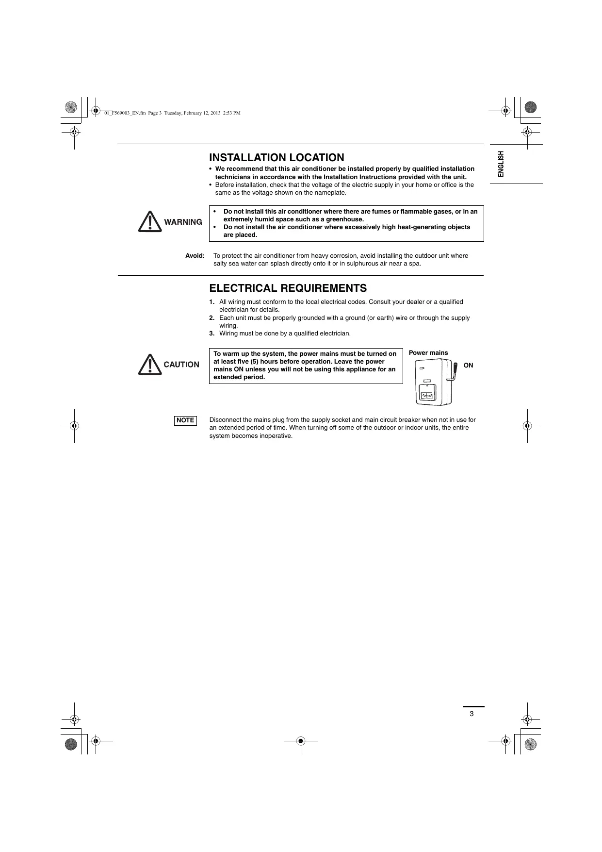 01_F569003_EN.fm Page 3 Tuesday, February 12, 2013 2:53 PM INSTALLATION LOCATION