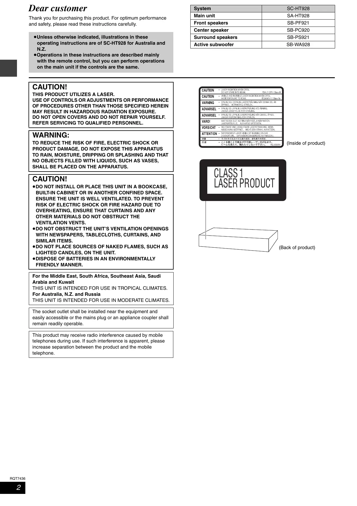 SCHT928 - Audio System PANASONIC - Free user manual and instructions