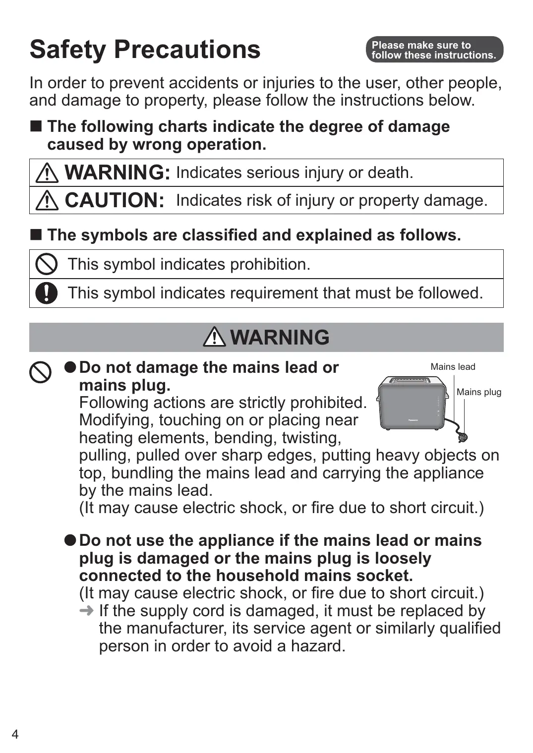 - Make sure to hold the mains plug when unplugging the mains plug.
