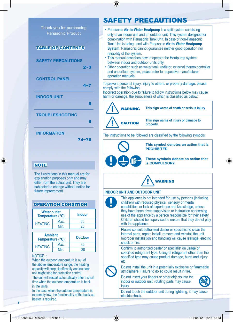Panasonic Product TABLE OF CONTENTS SAFETY PRECAUTIONS 2~3 CONTROL PANEL 4~7 INDOOR UNIT 8