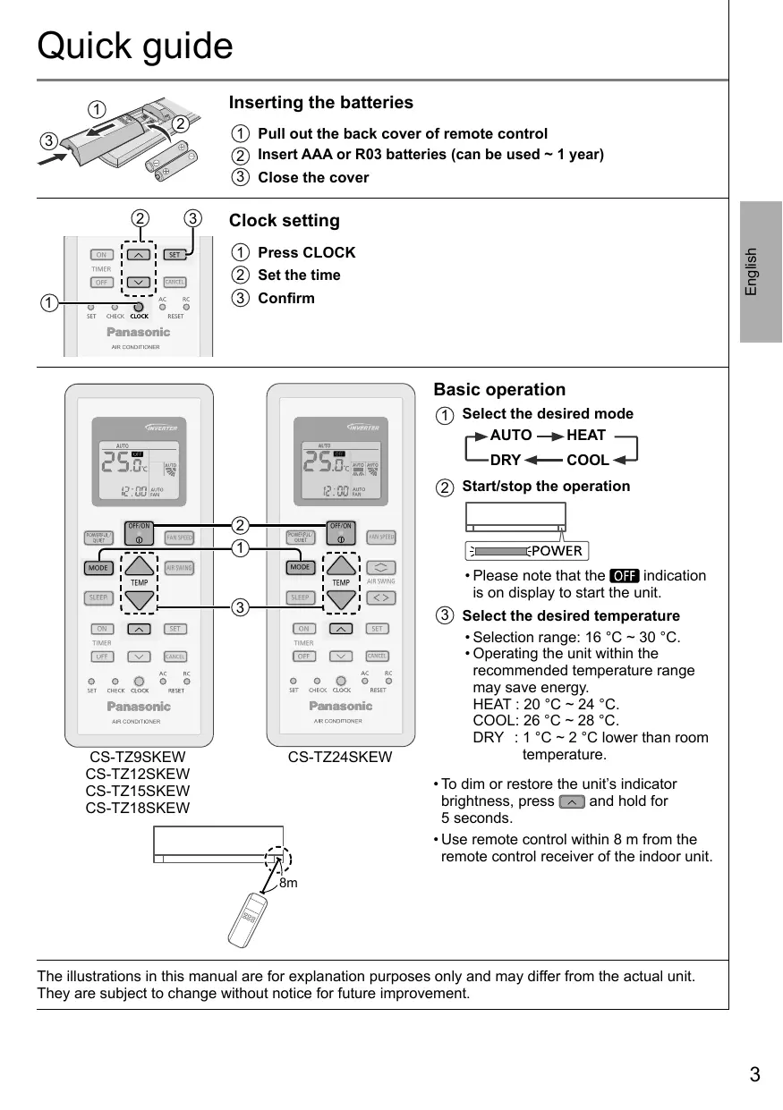 CS-TZ9SKEW CS-TZ12SKEW CS-TZ15SKEW CS-TZ18SKEW Press to restore the remote control to default setting.