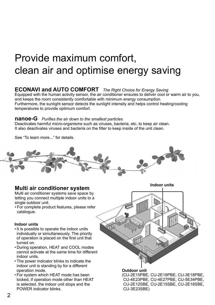 CU-2E15PBE CU-2E18PBE CU-3E18PBE CU-4E23PBE CU-4E27PBE CU-5E34PBE CU-2E12SBE CU-2E15SBE CU-2E18SBE CU-3E23SBE Model No.