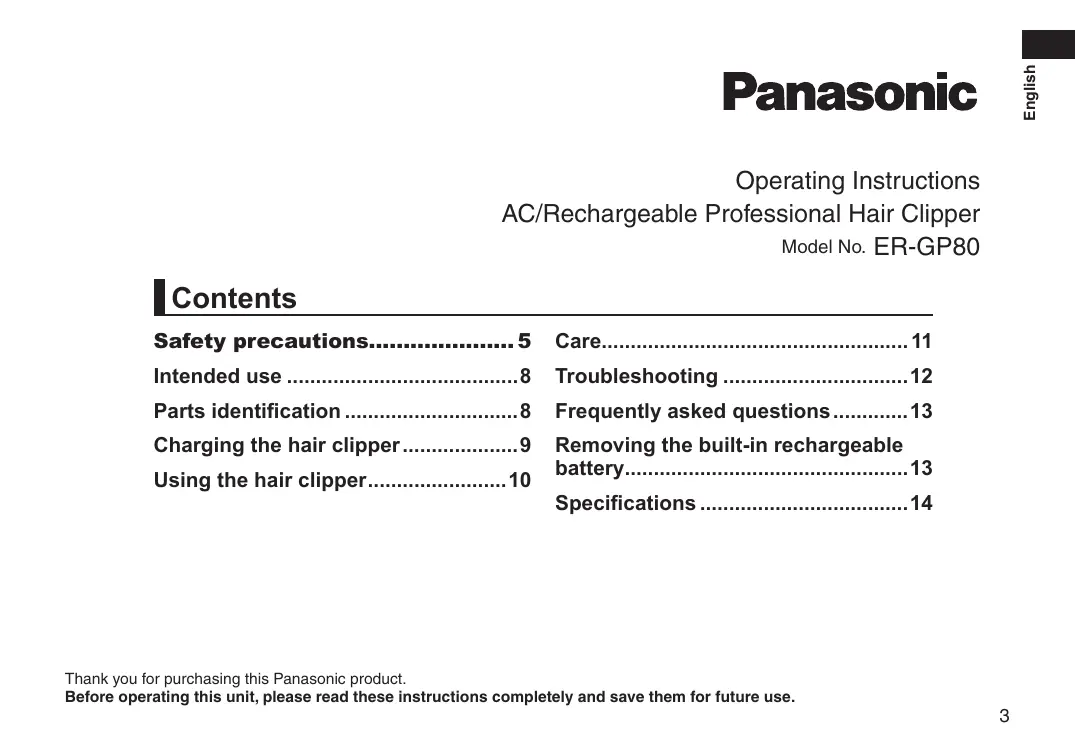 Find the device manual for free ER-GP80 PANASONIC in PDF.