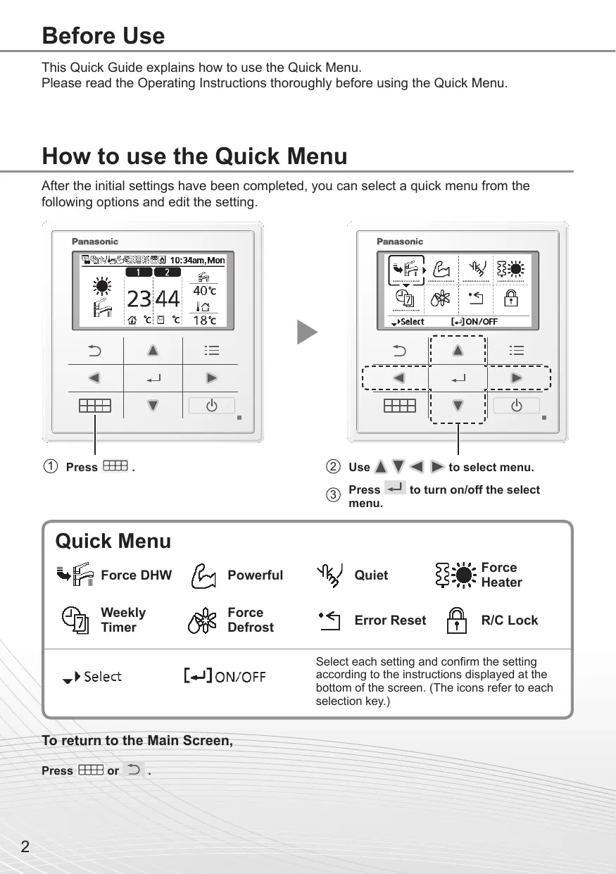 WHADC0309H3E5 - PANASONIC - Free user manual and instructions