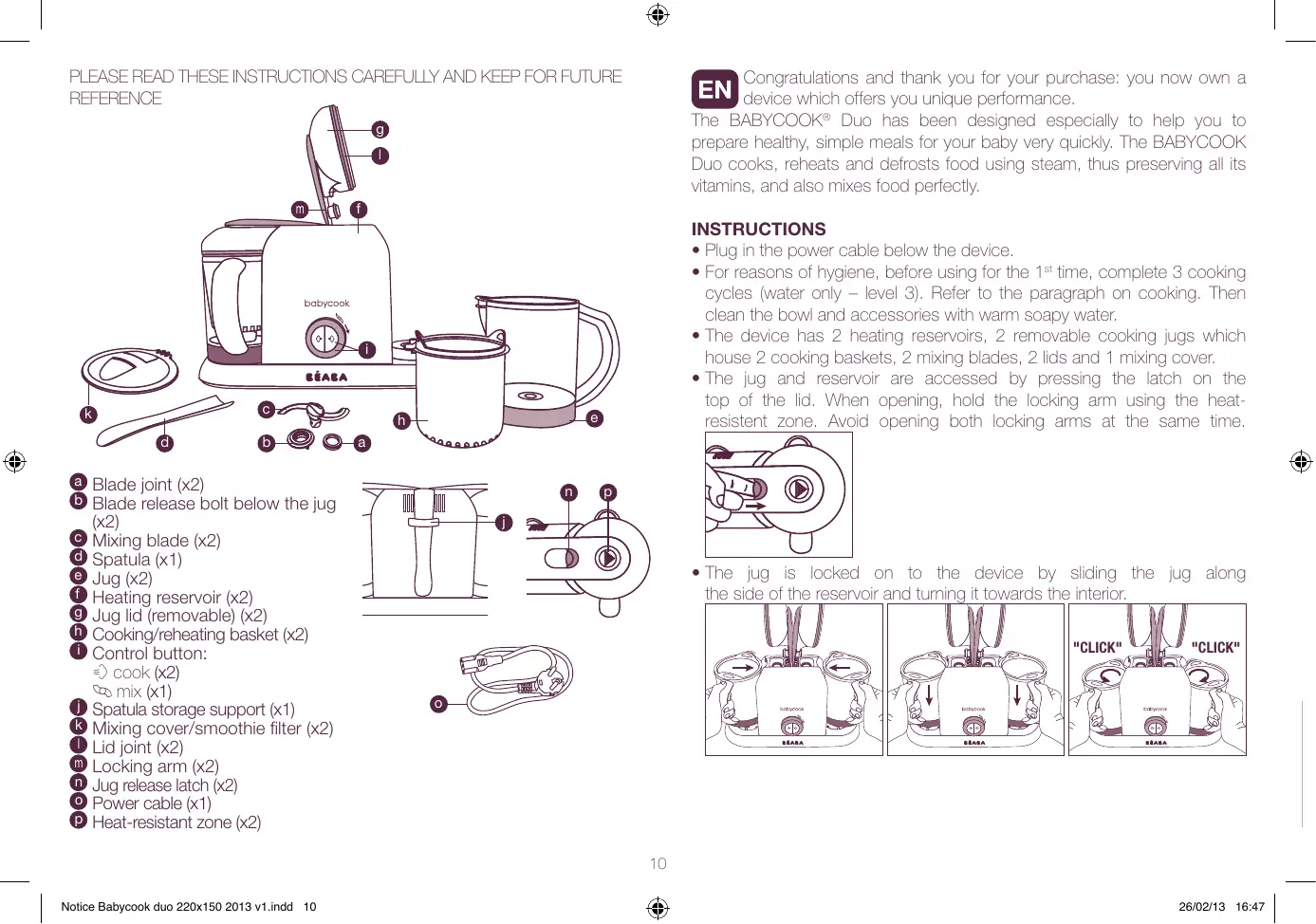 Download the instructions for your Robot cuiseur pour bébés in PDF format for free! Find your manual BABYCOOK DUO - BEABA and take your electronic device back in hand. On this page are published all the documents necessary for the use of your device. BABYCOOK DUO by BEABA.