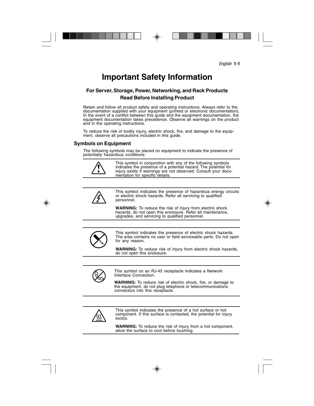 allow the surface to cool before touching. 1-2 English These symbols on power supplies or systems indicate the equipment is supplied by multiple sources of power.